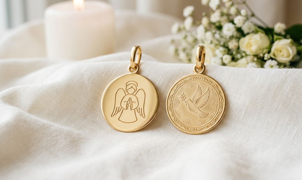 On trouve chez les bijoutiers des médailles de baptême qui sont plutôt adaptées pour un garçon ou une fille. Par exemple, du côté des garçons, on peut fabriquer des pendentifs avec Saint Christophe ou le Christ, dans un style un peu plus masculin. Et pour les petites filles, il n’est pas rare de voir des traits plus fins et plus minimalistes, avec des symboles comme la Vierge Marie. Bien évidemment, cela ne signifie pas qu’il ne soit pas possible d’offrir Saint Christophe à une petite fille et la Vierge Marie à un petit garçon… Il faut simplement faire attention au design et à l’aspect global du bijou.