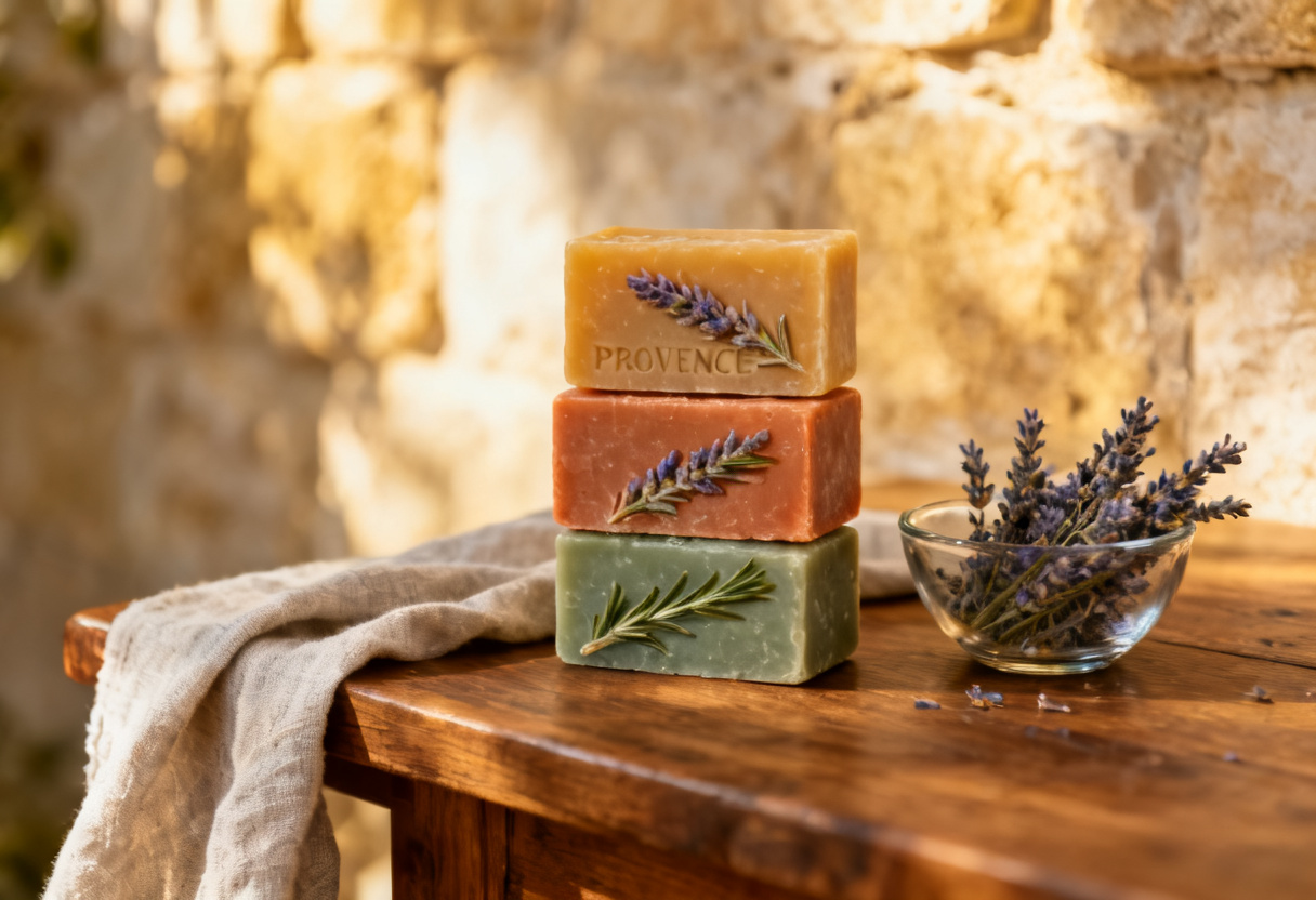 On pourrait presque répondre qu’on l’obtenait par « magie », tant la recette traditionnelle semble simple : en faisant patiemment cuire de l’huile végétale mêlée de soude dans de grands chaudrons, comme ceux utilisés par la savonnerie Marius Fabre depuis plus d’un siècle (http://www.marius-fabre.com/ ) ! Et quand on dit patiemment, ce n’est pas exagéré : il faut compter une dizaine de jours de cuisson ponctuée de ce qu’on appelle des « lavages » à l’eau salée pour éliminer peu à peu soude et impuretés. Après cette première étape (dite « la cuite »), le savon qui est devenu une pâte est versé encore chaud dans d’immenses moules où on le laisse sécher à l’air libre pendant deux jours, avant de le découper et de le marquer…